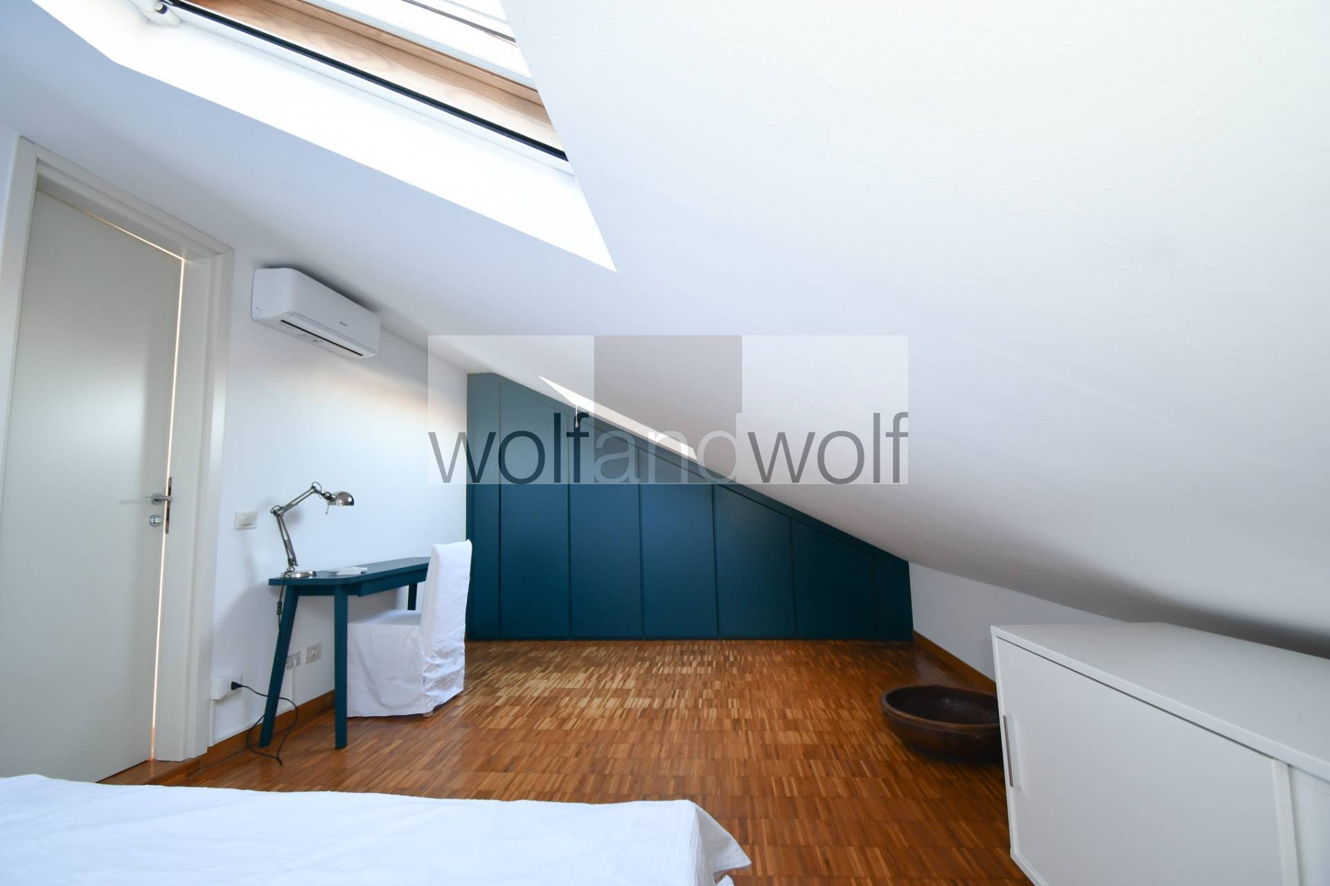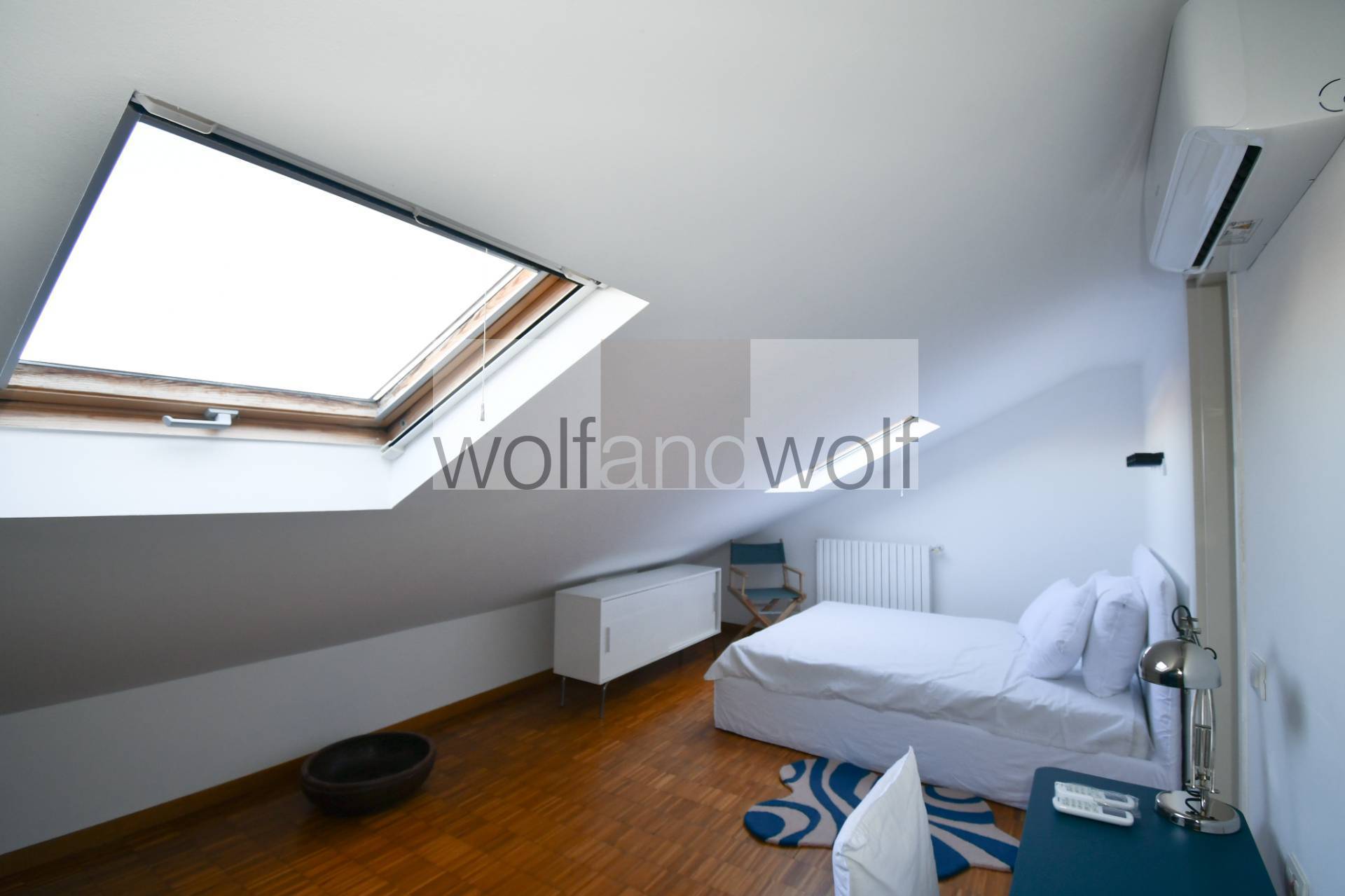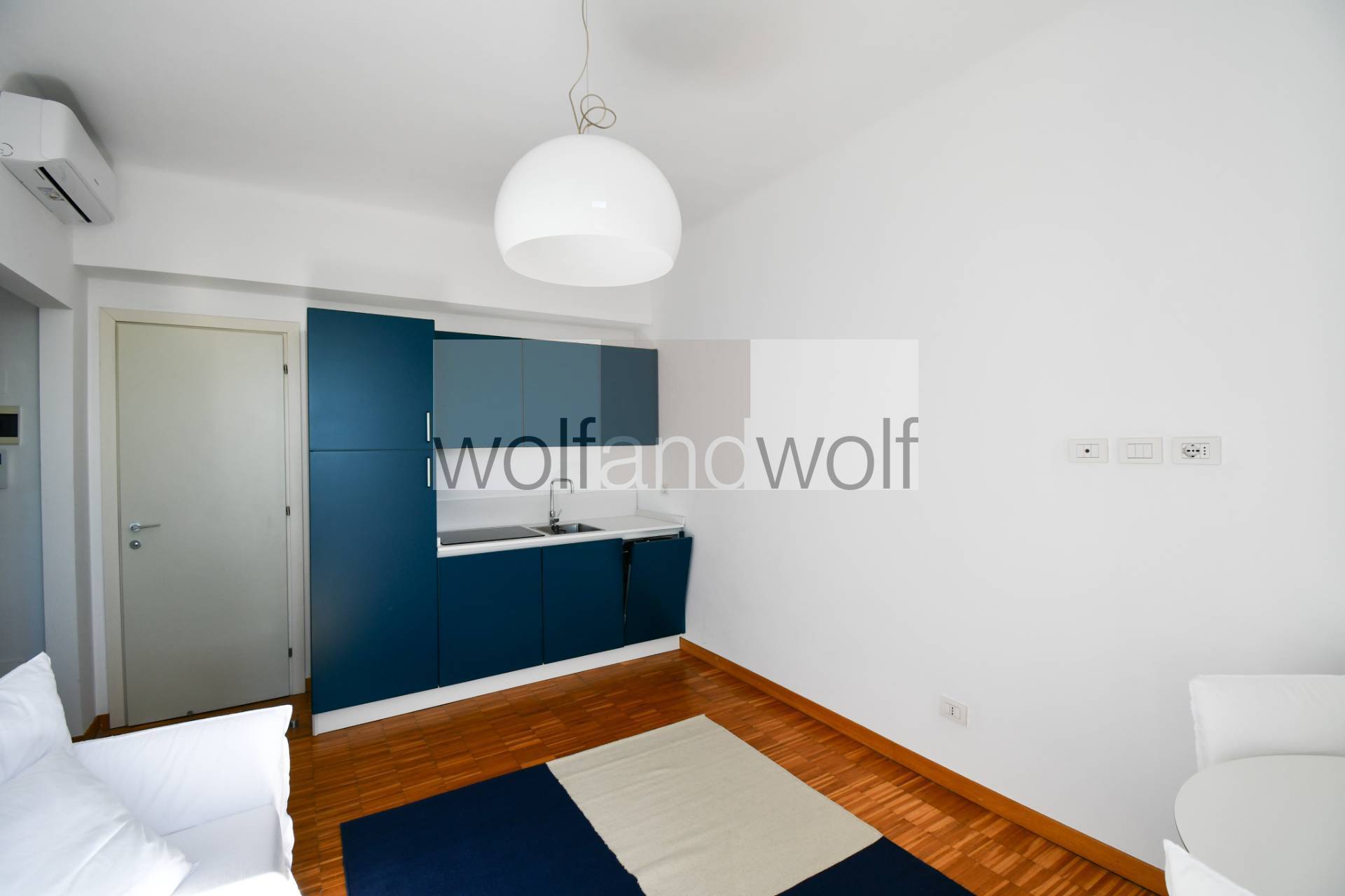 In one of Milan's most elegant and central neighborhoods, we offer for rent a recently renovated and fully furnished two-room apartment, located on the eighth and top floor of a stately building.