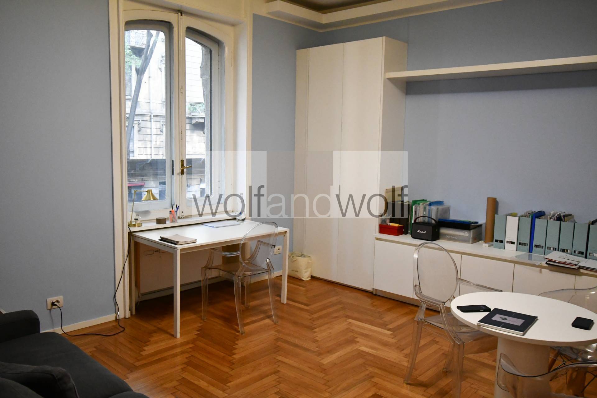 Thanks to the exterior exposure and high ceilings, the rooms are airy and flooded with natural light. The location is particularly privileged: Via Vincenzo Monti is renowned for its elegant restaurants, art galleries, and boutiques, and is excellently served by public transportation, with tram stops just steps away and the metro a short distance away.