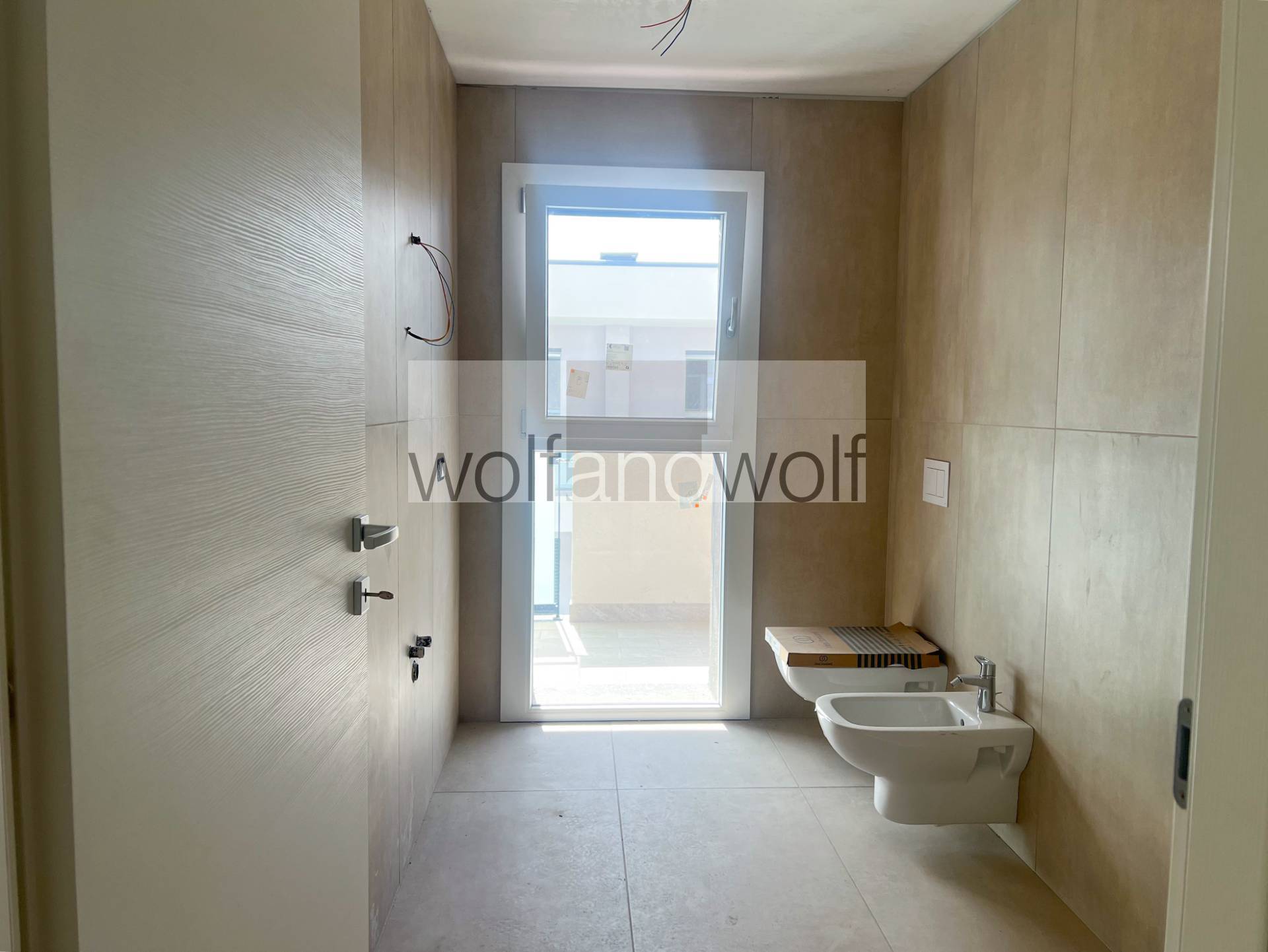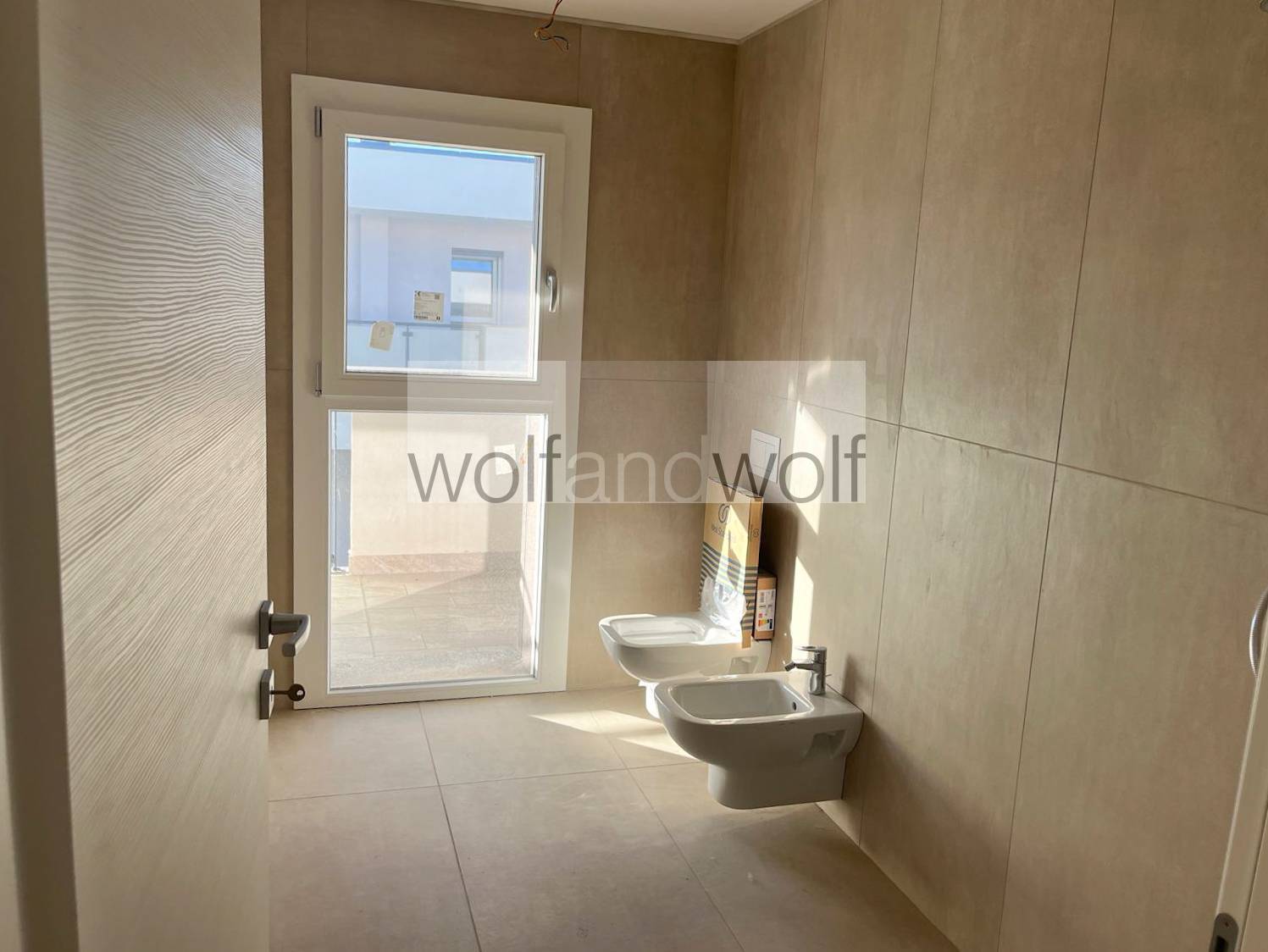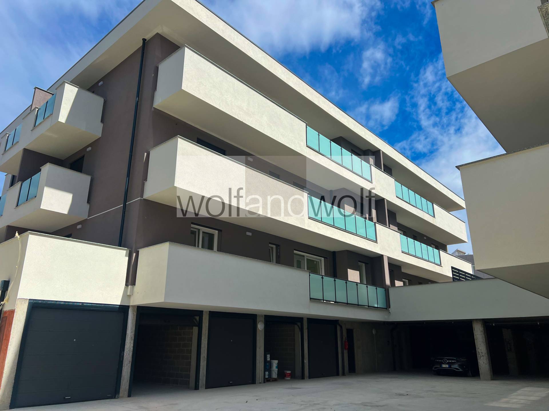 In an elegant and quiet residential area, in a modern building comprising 8 residential units, divided between the ground floor and first floor, we offer two apartments of approximately 100 square meters, comprising a living area with open-plan kitchen, two bedrooms, two bathrooms, and two large balconies.